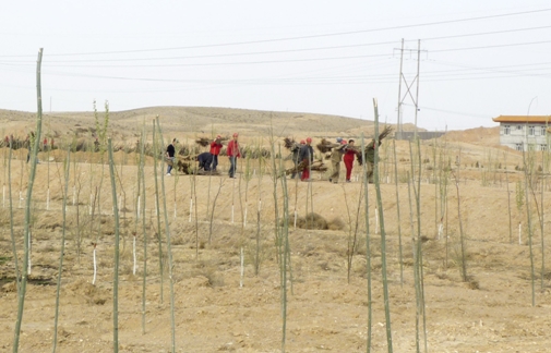 今年公司早在2月底就提前著手,專(zhuān)門(mén)行文向永寧縣政府申請(qǐng)樹(shù)苗,截止4月20日,通過(guò)多方協(xié)調(diào),前后三次從永寧縣林業(yè)局無(wú)償申領(lǐng)棗樹(shù)樹(shù)苗3100棵、沙棗樹(shù)苗5400棵、楊樹(shù)樹(shù)苗1065棵、刺槐樹(shù)苗3052棵,共計(jì)12627棵,其中補(bǔ)種去年樹(shù)苗2465棵。